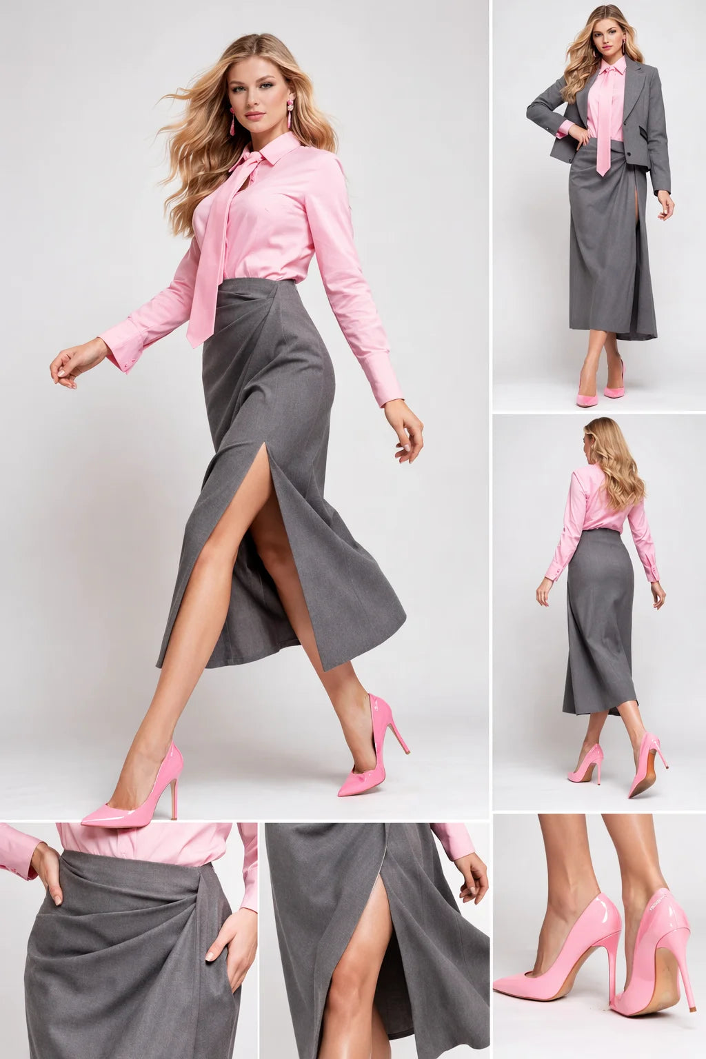 Fustă damă gri crăpată (OF1MZ6036)