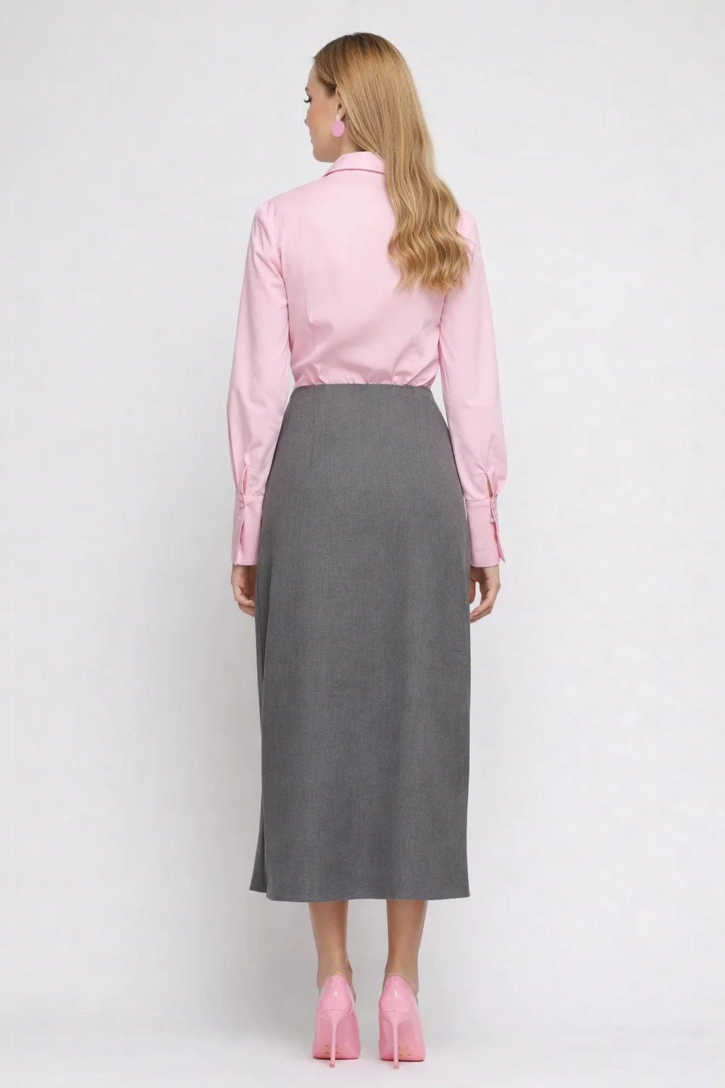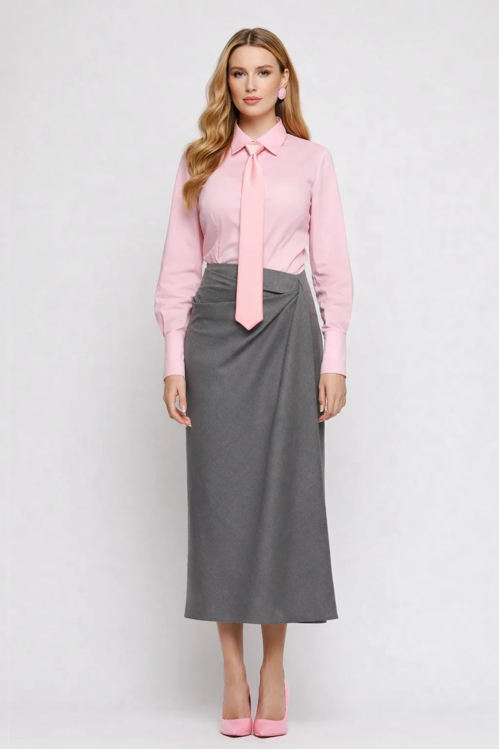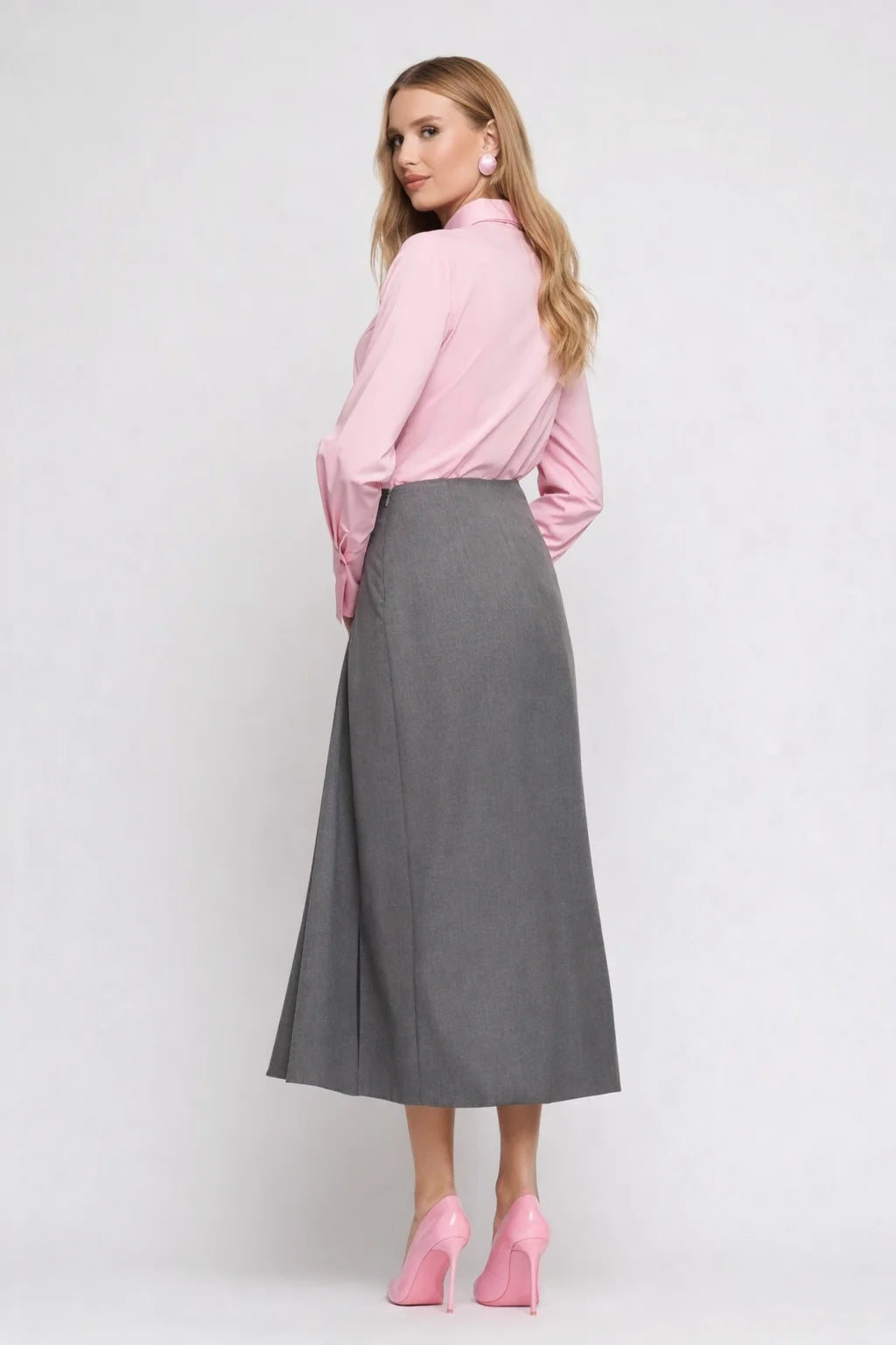Fustă midi conica cu drapaj elegant în față, confecționată din țesătură uni de calitate superioară. Designul sofisticat include un slit pe picior pentru confort și mobilitate, iar închiderea laterală cu fermoar asigură o potrivire impecabilă. Compozitia mixtă din 50% poliester reciclat, 33% raion, 13% poliester și 4% spandex oferă elasticitate și durabilitate, fiind o alegere responsabilă din punct de vedere ambiental. Piesa versatilă se potrivește atât pentru ocazii formale, cât și pentru ținute casual rafinate.
