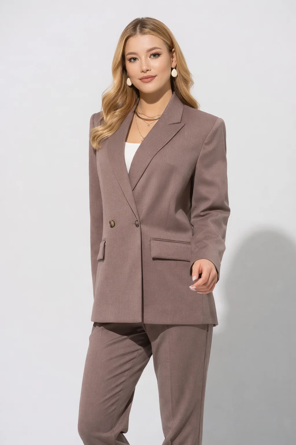 Sacoul ANEMONA este piesa de bază pentru garderoba modernă, cu croi oversize care echilibrează perfect rafinamentul cu o atitudine relaxată și sigură pe sine. Confecționat din țesătură de calitate cu compoziție mixtă (50% poliester, 48% rayon, 2% elastan), oferă confort și durabilitate. Designul versatil se adaptează ușor la stiluri diverse: pair-ul cu denim pentru o abordare casual, cu pantaloni drepti pentru elegență urbană, sau cu rochii fluide pentru contrast plăcut. Gulerul cu rever și închiderea suprapusă într-un nasture conferă o finisare sofisticată, în timp ce buzunarele funcționale cu capace adaugă utilitate. Manecile lungi și captuseala integrală asigură confort pe toată durata purtării. O investiție în stil care transformă orice ținută într-o declarație de încredere și bun gust.
